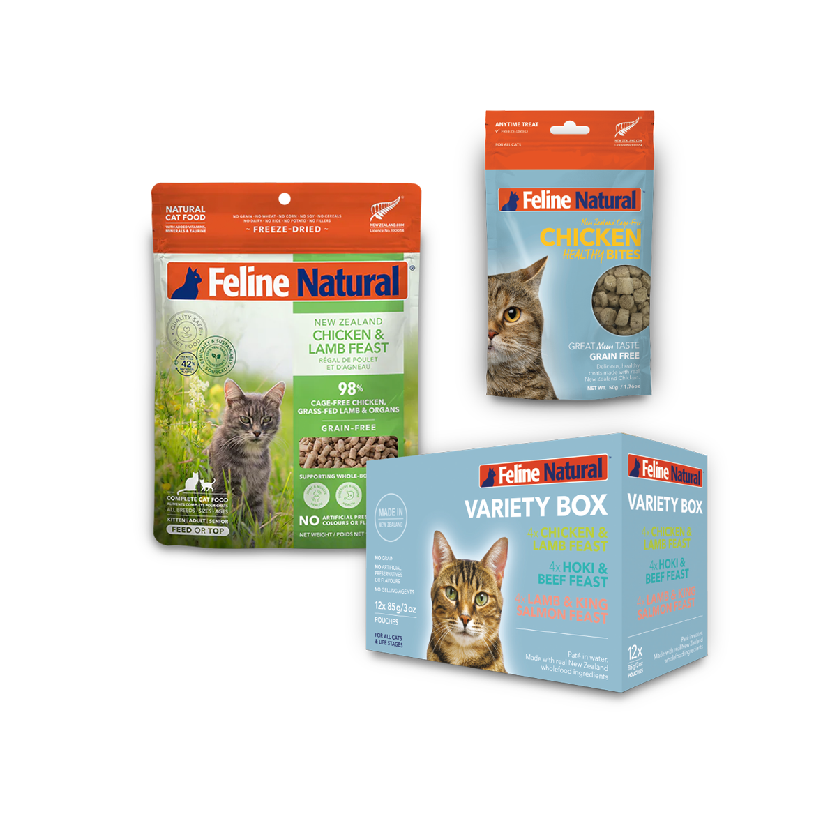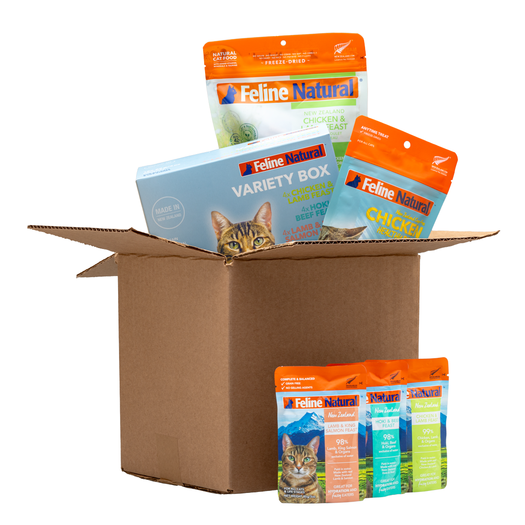 A curated selection of our fan favorite freeze-dried foods and pouches loved by even the pickiest cats. This bundle is the perfect introduction to our high-meat nutrition from New Zealand, giving your cat a taste of what real, natural ingredients can do.